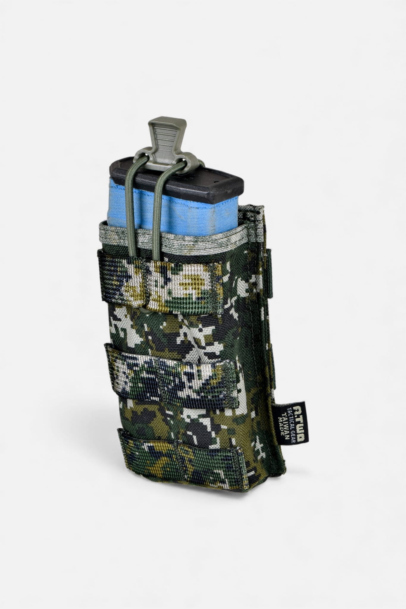 先從單連彈匣袋開始,改用高強度塑膠成型的幾何拉柄。立體的幾何切面設計,不是為了帥,是為了讓你的手指(就算戴著厚手套)能產生足夠的摩擦與扣合感!